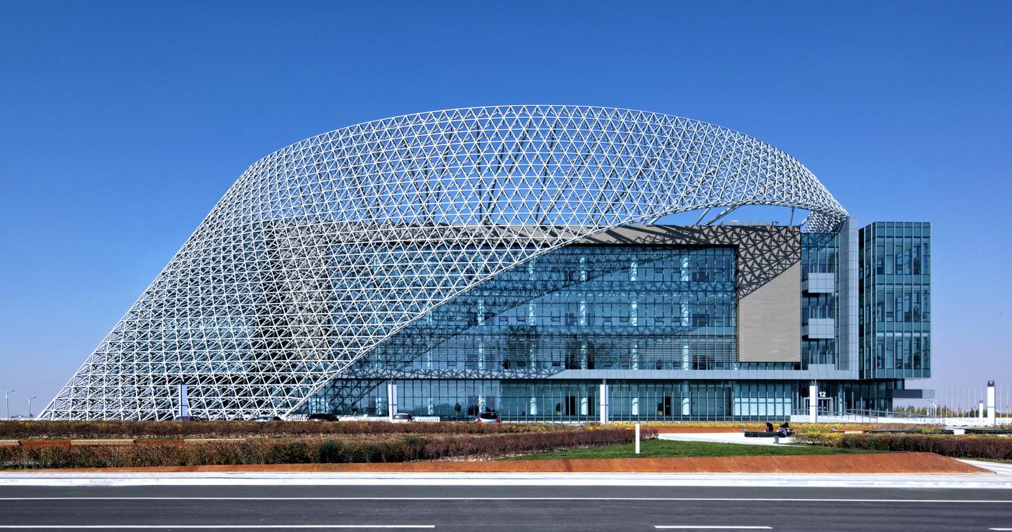 The Ningxia International Convention Center is the premier meeting, exposition, and performance center in central China and is the heart of the Ningxia master plan development. The building is an architectural landmark in the city. Rooted with concepts of local culture, yet conveying a strong Islamic identity, this iconic structure symbolizes the collaboration between the two worlds. Inspired by ancient Chinese metaphors and strong Islamic artistic patterns, this center is a harmonious merging of both cultures.