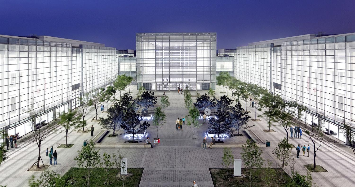 In an international competition-winning design, TVS presented a master plan for the New China International Exhibition Center that encompasses a mixed use development as well as the country’s premier exhibition complex. In keeping with Beijing’s vision of livable work environments and significant green space development, the plan links the site to the nearby Wen Yu River and the proposed green belt that runs its length.