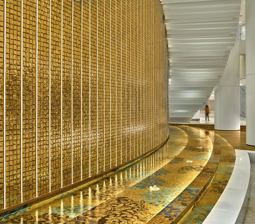 The design concept is inspired by both Chinese and Arabic cultural elements. The primary concept is the use of the circle and the square. In both cultures, pure geometries have significant influence throughout history. In China, the ancient coin, for example, is a strong metaphor for harmony between heaven (the circle) and earth (the square). In the Muslim culture, the combination of the circle and the square is called the Mandala motif, and is recognized as the unifying intermediary between the materialism and the spiritual world.