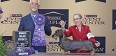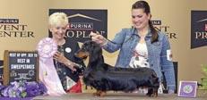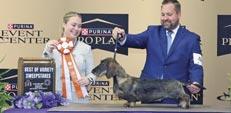 On January 28, 2023, Dachshunds returned to “Meet the Breeds” held in the Javits Convention Center on Manhattan’s West Side. Usually held the week before Westminster, it had proved impossible to participate because less than a week later had been two or three Dachshund specialties, satellites to Westminster, that took a lot of effort. No one was able to take on a Meet the Breeds appearance just before the specialties. Covid and its ancillary problems occasioned Westminster shifting to other venues in May and Dachsie people were freed up to showcase our dogs in Meet the Breeds.