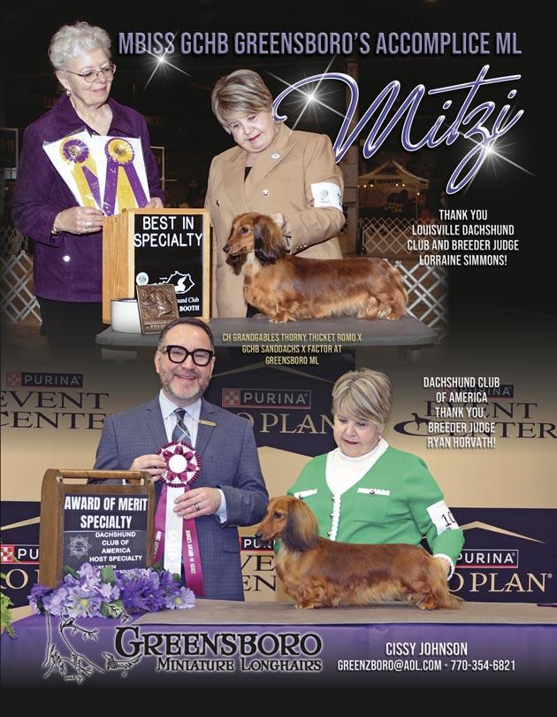 Don’t forget about adding your dogs to the new breeder database - info is on page 104. Also, don’t forget that the newsletter is distributed digitally for all AKC dachshund judges - time to advertise!