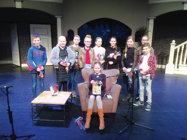 NIJVERDAL - Zaterdag was de voorleeswedstrijd voor basisschoolleerlingen uit de groepen 7 en 8 van de gemeente Hellendoorn. Alle basisscholen stuurden hun voorleeskampioen naar het ZINiN Theater in Nijverdal. Er was een ochtenden een middagronde zodat er twee kampioenen gehuldigd konden worden. Elke voorlezer zocht zijn of haar lievelingsboek uit en las zo mooi mogelijk voor. De jury had een moeilijke taak om de beste uit te zoeken. Uiteindelijk was Amelie Timmermans van basisschool 'de Peppel' winnares van de ochtendronde Zij las voor uit een boek van Joke van Leeuwen met de titel 'Kweenie'. Nina Dijk