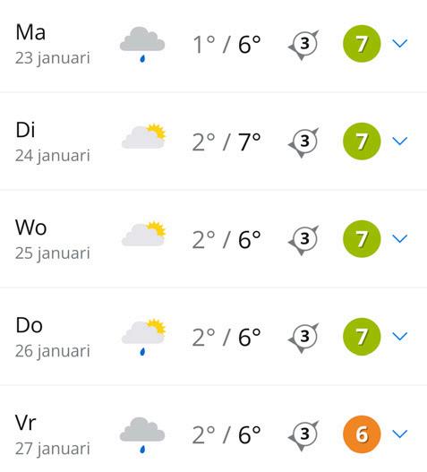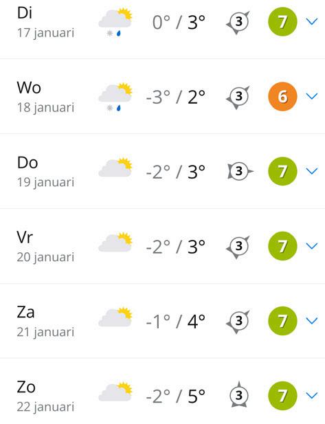 natte sneeuw. Meer dan dat hoeven we nog niet te verwachten. De maxima komen uit rond een graad of 7 en de wind blijft een zeer dominante rol spelen. Er waait een vrij krachtige wind.