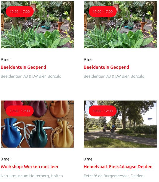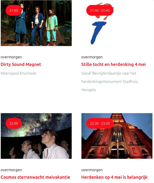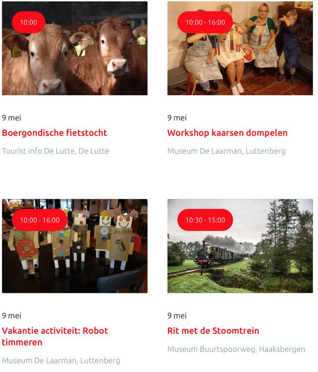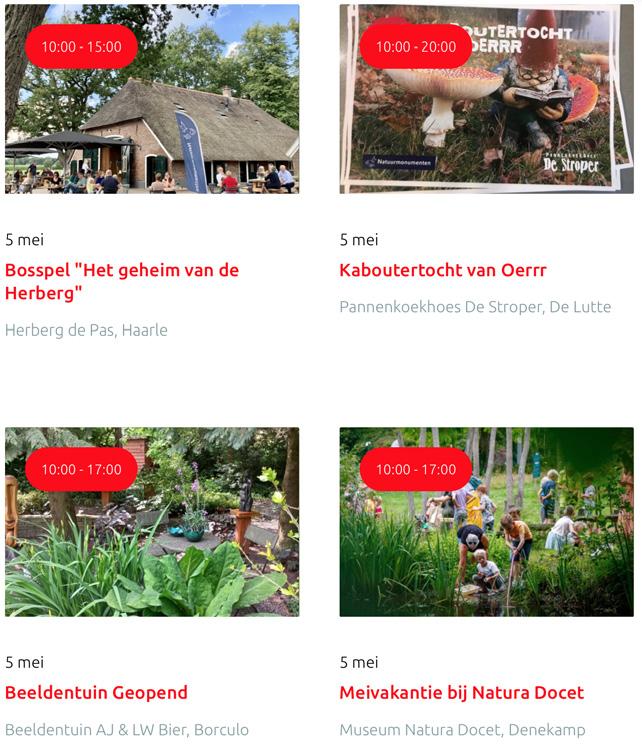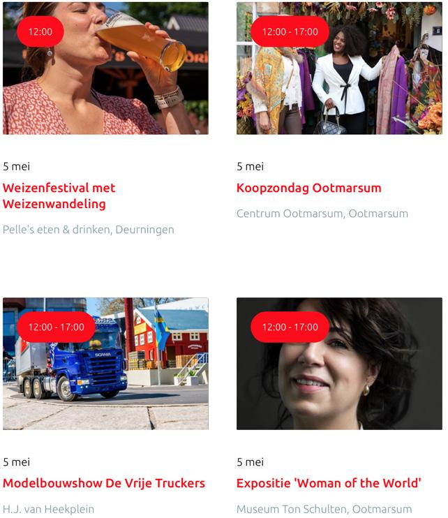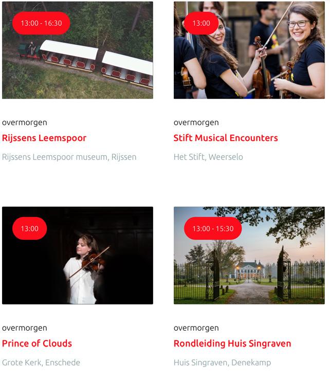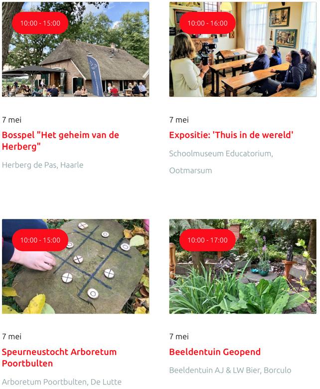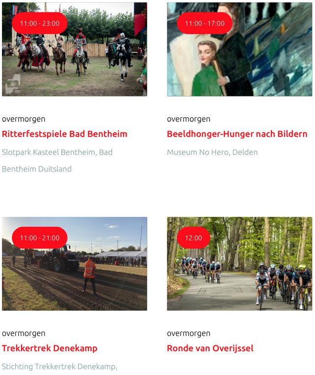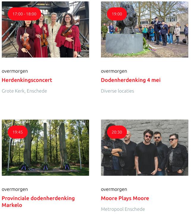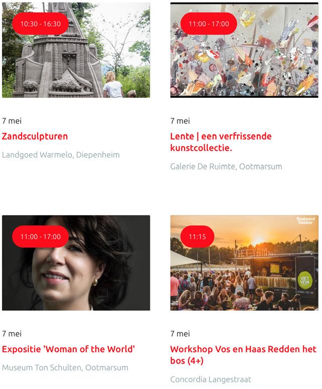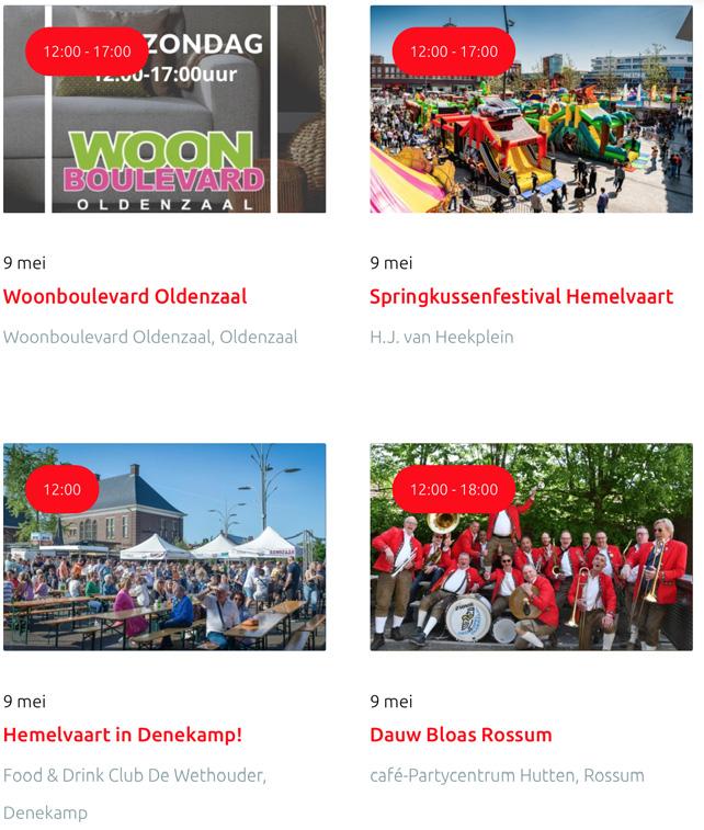 Voor een actueel overzicht kijk op: www.visittwente.nl/uitagenda of www.uittwente.nl. Evenementen en activiteiten aanmelden kan via de plaatselijke VVV/Tourist Info en redactie@twentejournaal.nl