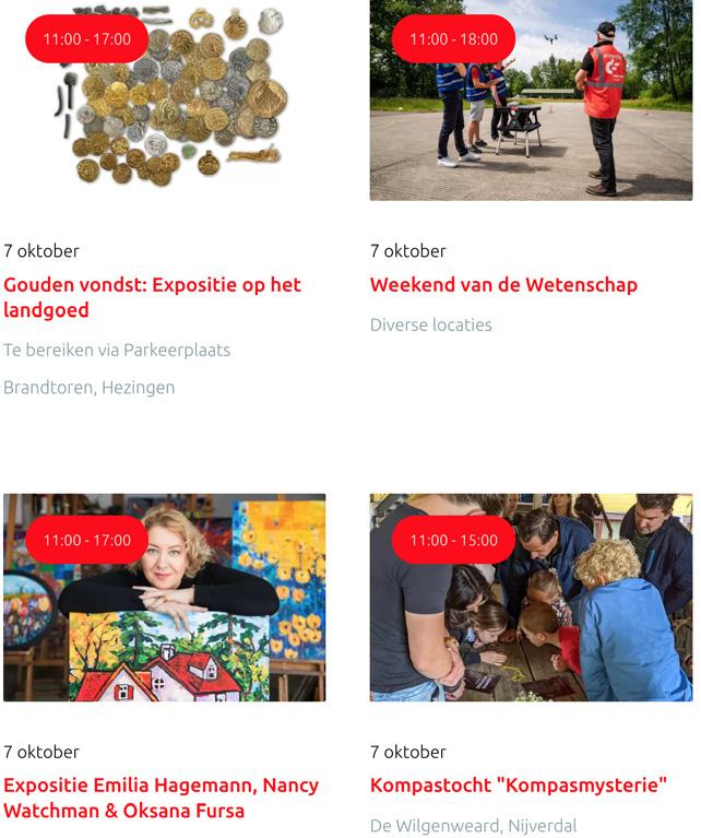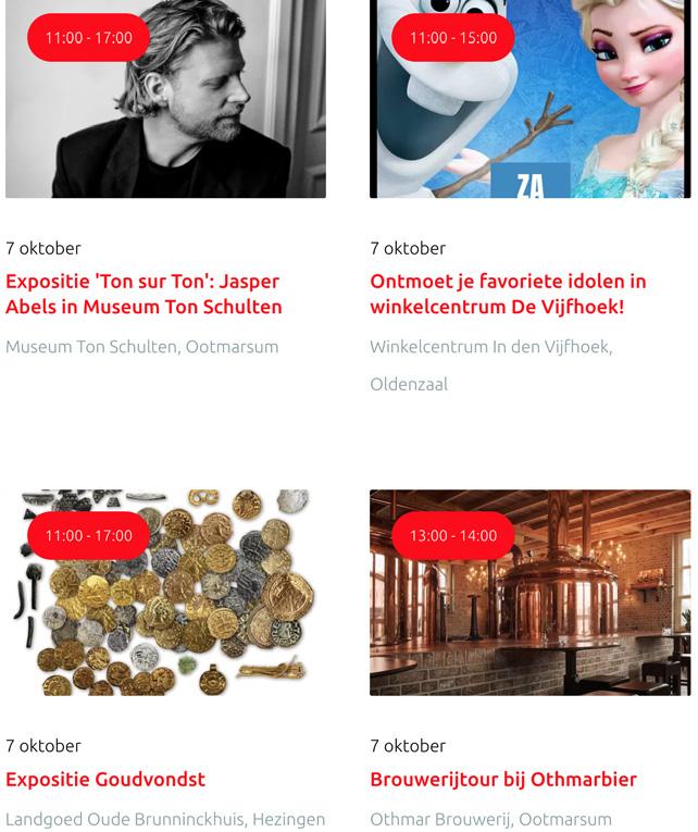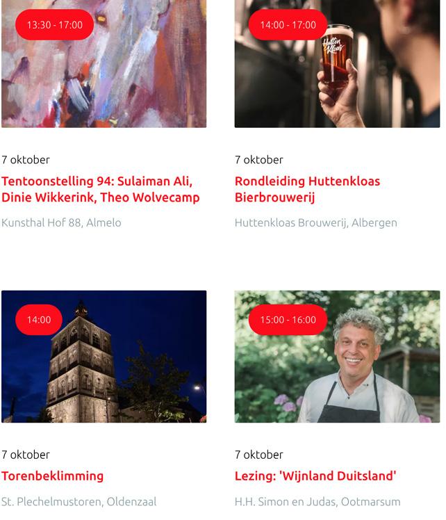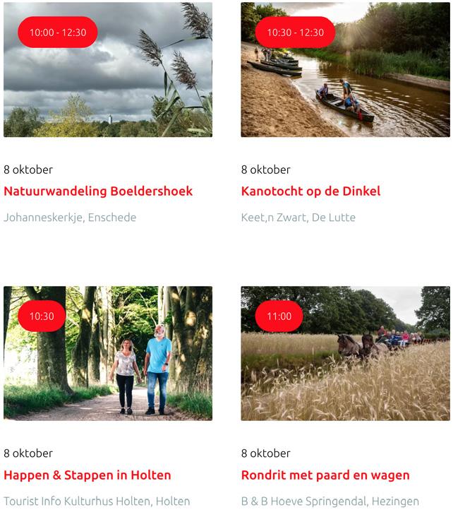 Voor een actueel overzicht kijk op: www.visittwente.nl/uitagenda of www.uittwente.nl. Evenementen en activiteiten aanmelden kan via de plaatselijke VVV/Tourist Info en redactie@twentejournaal.nl