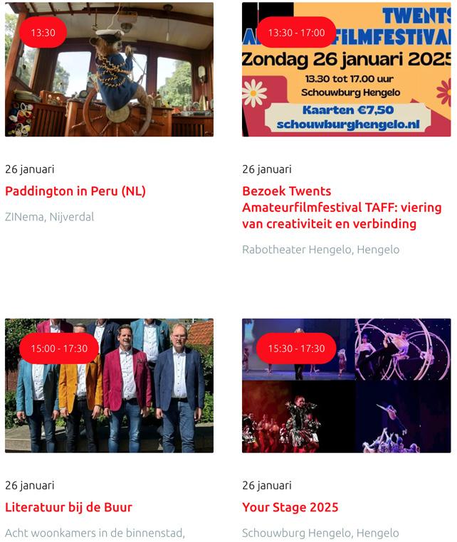 Deze uitagenda is opgesteld in samenwerking met www.visittwente.nl. De redactie wordt gedaan door de VVV/Tourist Info’s in Twente.