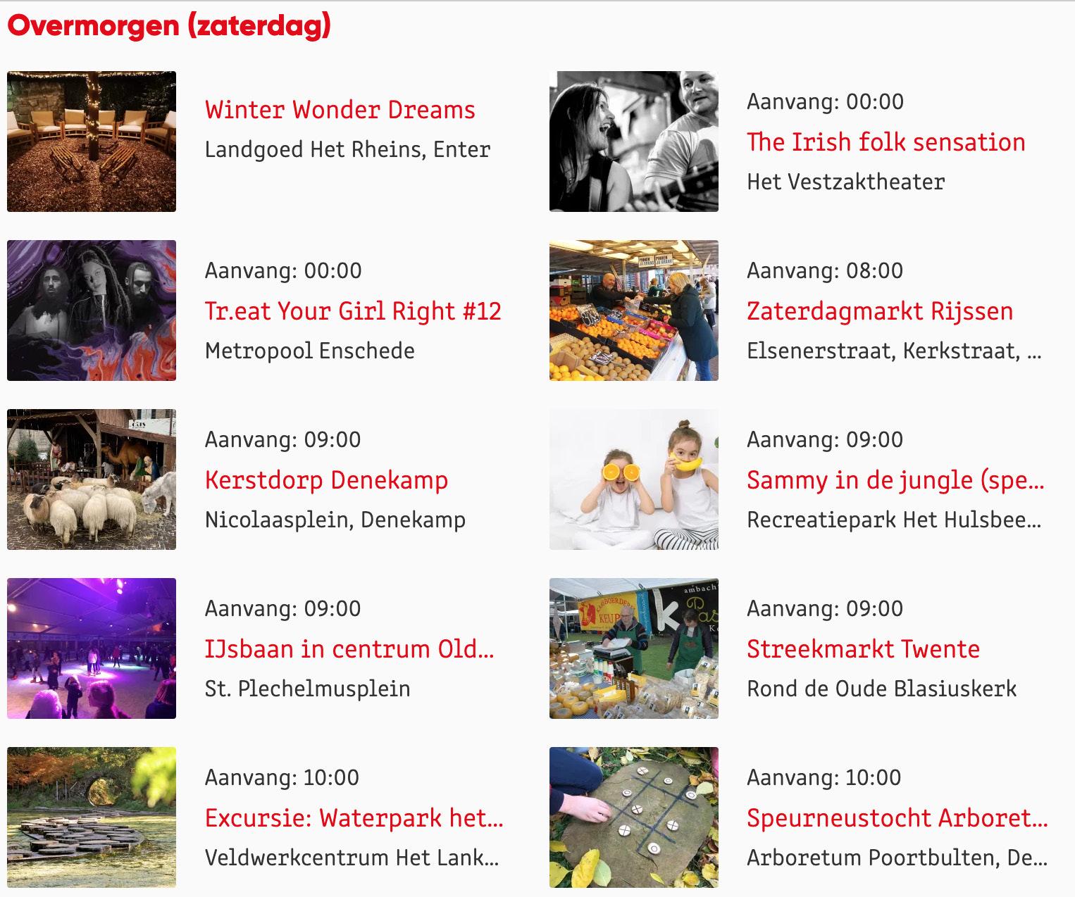 Deze uitagenda is opgesteld in samen werking met www.visittwente.nl. De redactie wordt gedaan door de VVV/Tourist Info’s in Twente.