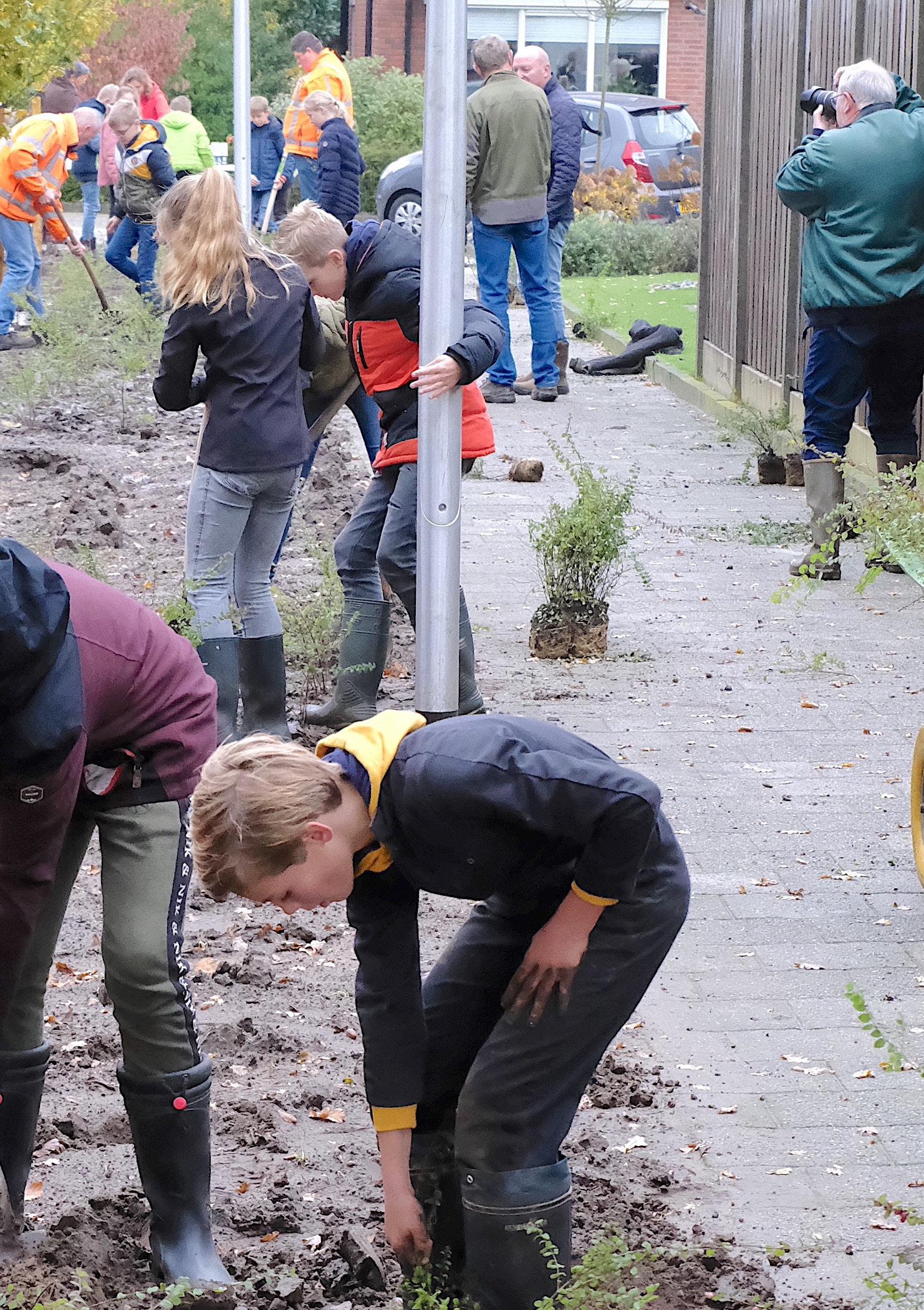 Woensdag 16 november was het Nationale Boomfeestdag Leerlingen van basisschool de Triangel plantten in groepjes van twee 14 bomen en 500 sierstruiken aan de Venkel in de Kruidenwijk. Wet houder Egbert Nijenbanning hees eerst samen met Ella Stoelers en Lars Hegeman de Nationale Boomfeestvlag en plantte vervolgens samen met Cas Maas en Stef Wagenvoort de eerste boom.
