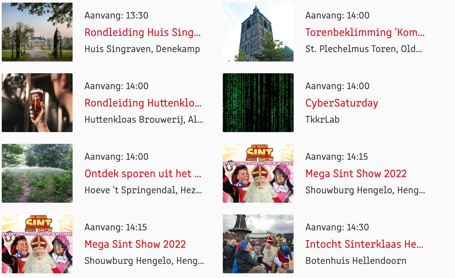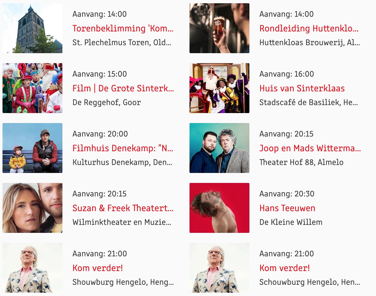 Deze uitagenda is opgesteld in samen werking met www.visittwente.nl. De redactie wordt gedaan door de VVV/Tourist Info’s in Twente.