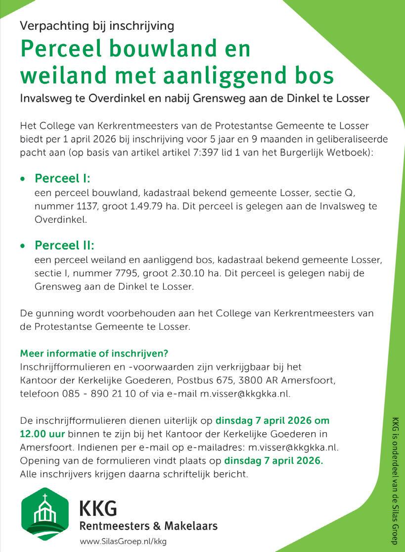 Het ontwerp ligt met ingang van 26 maart 2026 voor een periode van zes weken ter inzage. U kunt de stukken digitaal bekijken via www.losser.nl/bekendmakingen of via de website www.officielebekendmakingen.nl. Het ontwerpbeleid kan verder tijdens de openingstijden worden ingezien bij de receptie van het gemeentehuis van Losser.