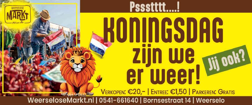 Hoera! De Koning is jarig en dat wordt feestelijk gevierd in het centrum van Losser. Op zaterdag 25 april en maandag 27 april staat het centrum in het teken van gezelligheid, muziek en activiteiten voor jong en oud. Nog meer reden om naar Losser te komen. Zaterdag is de aftrap met een speciale, koninklijk getinte Boerenmarkt.