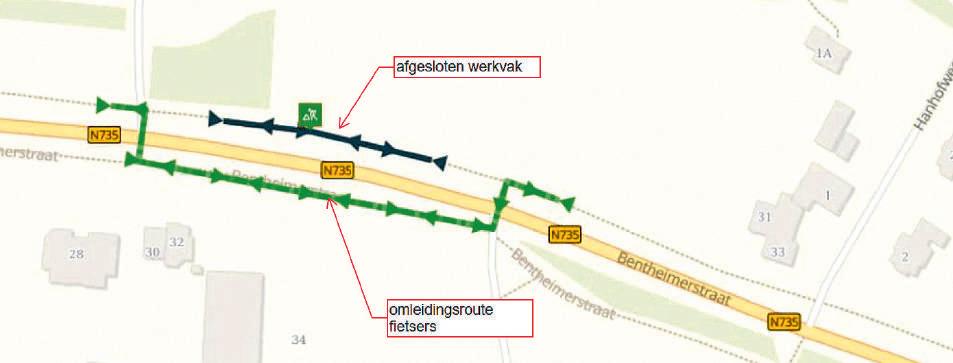 Op woensdag 22 april zijn rioleringswerkzaamheden begonnen onder het fietspad aan de noordkant van de Bentheimerstraat. Deze werkzaamheden duren tot donderdag 23 april. De werkzaamheden vinden plaats ter hoogte van huisnummer 29. Om het werk te kunnen uitvoeren sluiten we het fietspad af voor fietsers en voetgangers. Via borden wordt een tijdelijke omleiding aangegeven naar het fietspad aan de zuidkant van de Bentheimerstraat. We raden fietsers die richting Oldenzaal gaan aan om direct gebruik te maken van het fietspad aan de zuidkant.