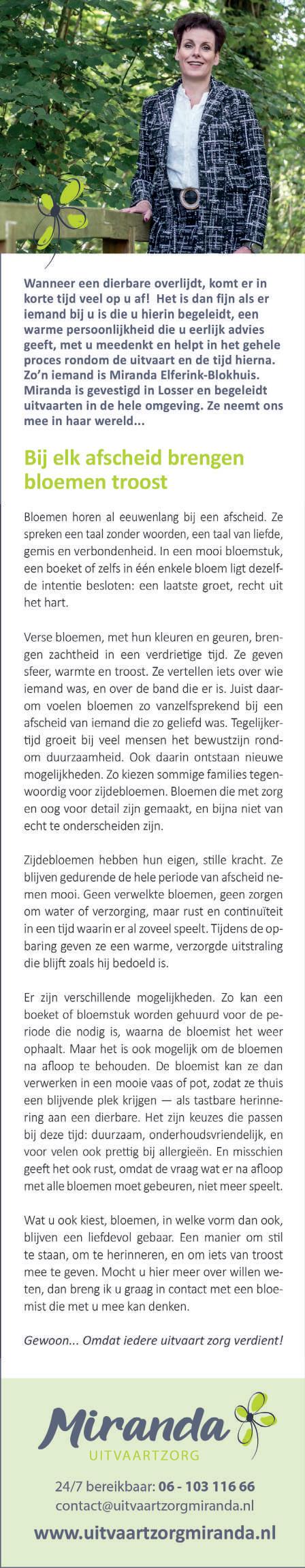 Maar liefst 12.000 papieren exemplaren van dit blad worden elke week verspreid in Losser, Overdinkel, De Lutte, Beuningen en Glane. Ook op de website van dit blad zijn de familieberichten altijd te lezen.
