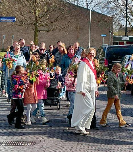 Na een mooie viering in de kerk, trok de traditionele palmpasenoptocht door Weerselo. Onder muzikale begeleiding van de St. Remigius Harmonie, liepen de kinderen met hun kleurrijke palmpaasstokken naar St. Jozef. Daar gaven ze de bewoners een zelfgemaakt mandje met paaseitjes. Een waardevol moment voor jong en oud.