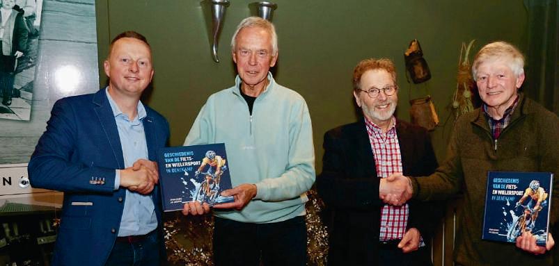 Vervolgens mochten de drie Denekampse ‘Toppers van toen’ op het gebied van de wielersport, Hennie Kuiper, Herman Snoeijink en Erwin Nijboer, een exemplaar in ontvangst nemen. Voorts overhandigden Jan en Johan nog een exemplaar aan de twee sponsoren, namelijk de Stichting Puck Berhag en de Stichting Wielerevenementen Dinkelland (SWD), wethouder Cel Severijn, de vertegenwoordigers van de toerclub RTC Twente, de wielerclub OWC uit Oldenzaal