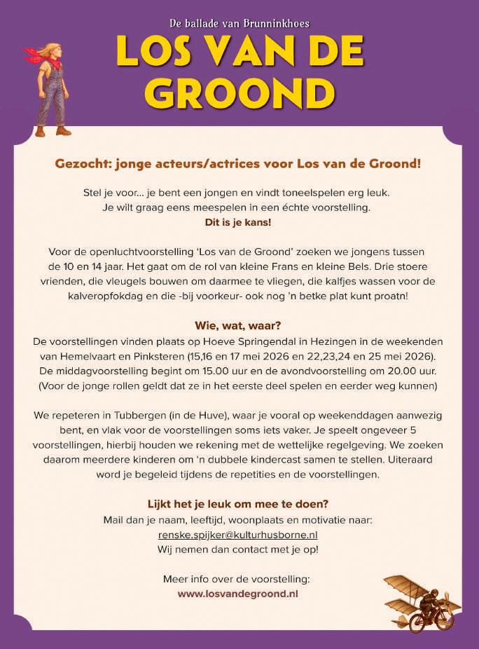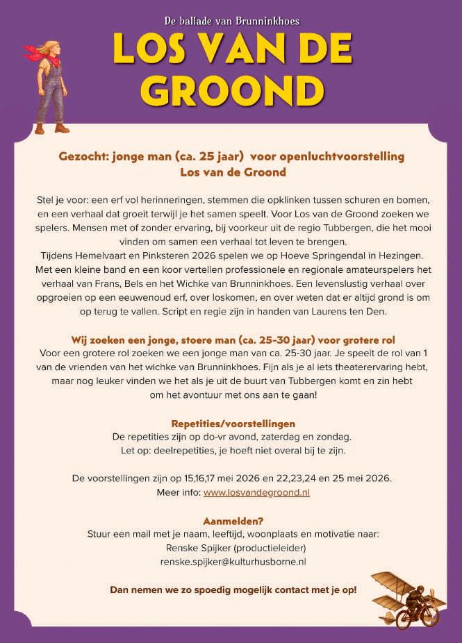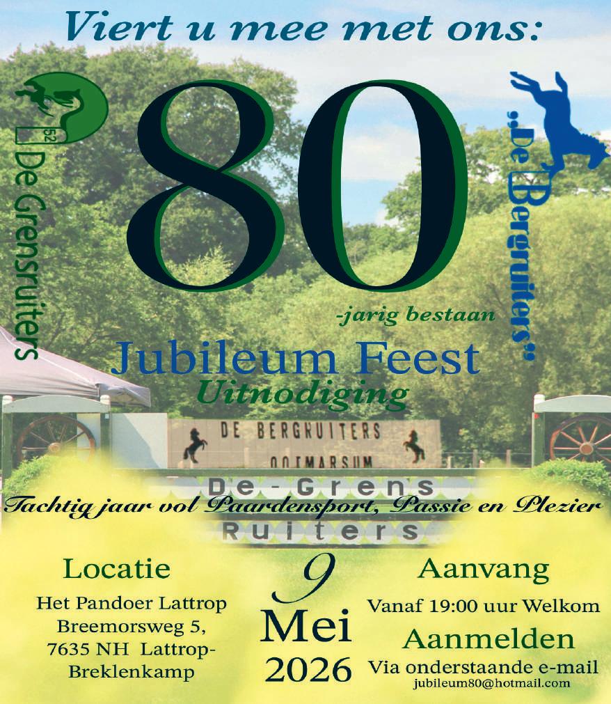 De uitgever is nimmer aansprakelijk voor eventuele onjuiste vermeldingen van gegevens. Op onze artikelen en foto’s rust een copyright. Artikelen en foto’s uit deze krant mogen nooit zonder toestemming voor andere doeleinden worden gebruikt. Lever alleen originele foto’s aan. Bronvermelding verplicht bij plaatsing foto? Plaats zelf de bronvermelding in de foto. Mail nooit AI-foto’s of vermeld duidelijk dat dit een AI foto betreft.