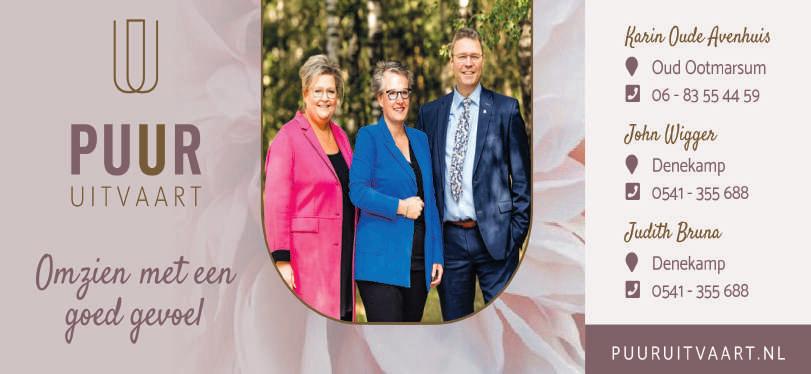 Maar liefst 13.500 papieren exemplaren van dit blad worden elke week verspreid in Denekamp, Ootmarsum, Tilligte, Lattrop, Noord Deuningen, Beuningen, Groot Agelo, Breklenkamp, Weerselo, Saasveld, Deuningen en Rossum. Ook op de website van dit blad zijn de familieberichten altijd te lezen.Maak de rouwadvertentie of dankbetuiging zo persoonlijk als je zelf wenst. Een advertentie in dit blad wordt door meer dan 80 procent van alle inwoners van de gemeente gelezen! Dus voor een scherpe prijs gegarandeerd een groot bereik!