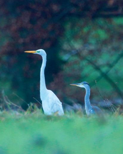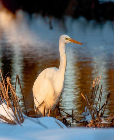We kennen waarschijnlijk allemaal wel de blauwe reigers,nou ja blauw...in mijn ogen zijn ze toch meer grijs. De blauwe reigers kun je het hele jaar door aantreffen maar in de winter zie je hier ook vaak witte reigers. De grote zilverreiger is op sommige plekken in Nederland een broedvogel maar in onze omgeving zijn het voornamelijk overwinteraars. Reigers zijn niet heel kieskeurig wat eten betreft, onder andere kikkers, insecten maar ook kleine zoogdieren worden gretig naar binnen gewerkt als ze de kans hebben ze te vangen.