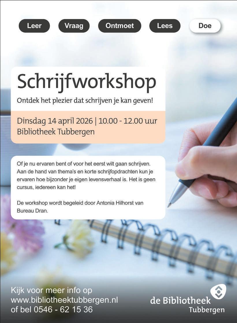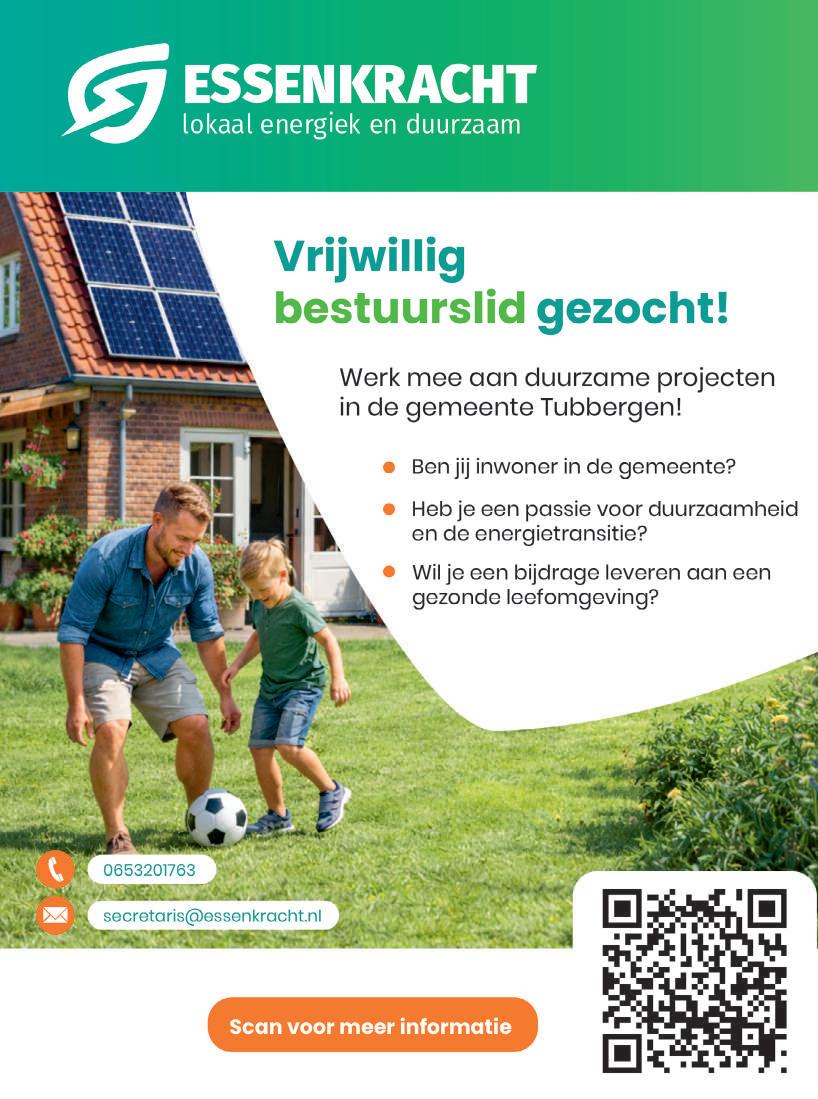 bureau gaat. Hoe dan ook: jouw mening doet ertoe. Jongeren die een woning zoeken, gezinnen die voorzieningen belangrijk vinden, ondernemers die willen investeren en ouderen die waarde hechten aan goede zorg en bereikbaarheid al deze stemmen samen vormen het verhaal van Tubbergen.
