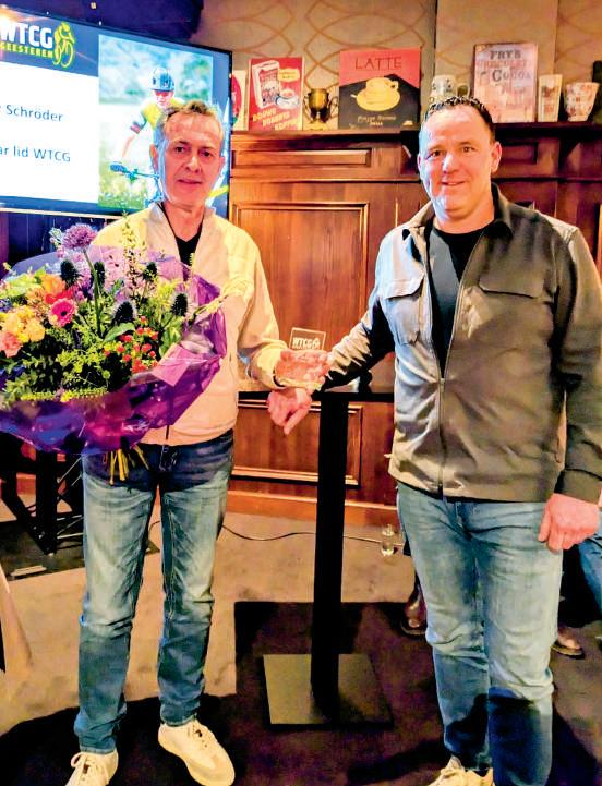 Peter Schröder werd gehuldigd omdat hij 25 jaar lid is van de club. Ook hij ontving bloemen en een blijvend aandenken. Peter is een zeer gewaardeerd lid die overal de kleine paadjes voor de mountainbike weet te vinden.