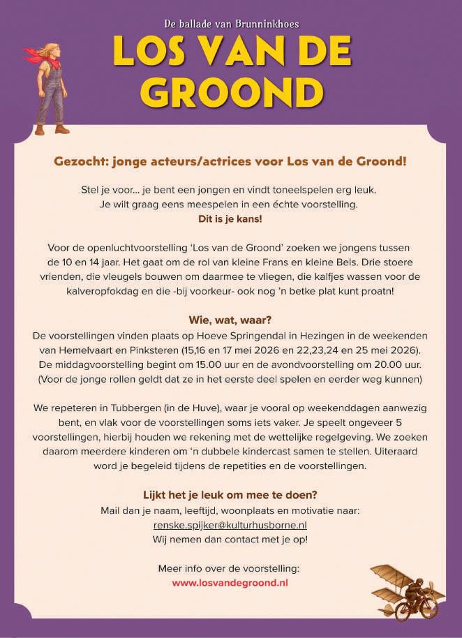 De uitgever is nimmer aansprakelijk voor eventuele onjuiste vermeldingen van gegevens. Op onze artikelen en foto’s rust een copyright. Artikelen en foto’s uit deze krant mogen nooit zonder toestemming voor andere doeleinden worden gebruikt. Lever alleen originele foto’s aan. Bronvermelding verplicht bij plaatsing foto? Plaats zelf de bronvermelding in de foto. Mail nooit AI-foto’s of vermeld duidelijk dat dit een AI foto betreft.