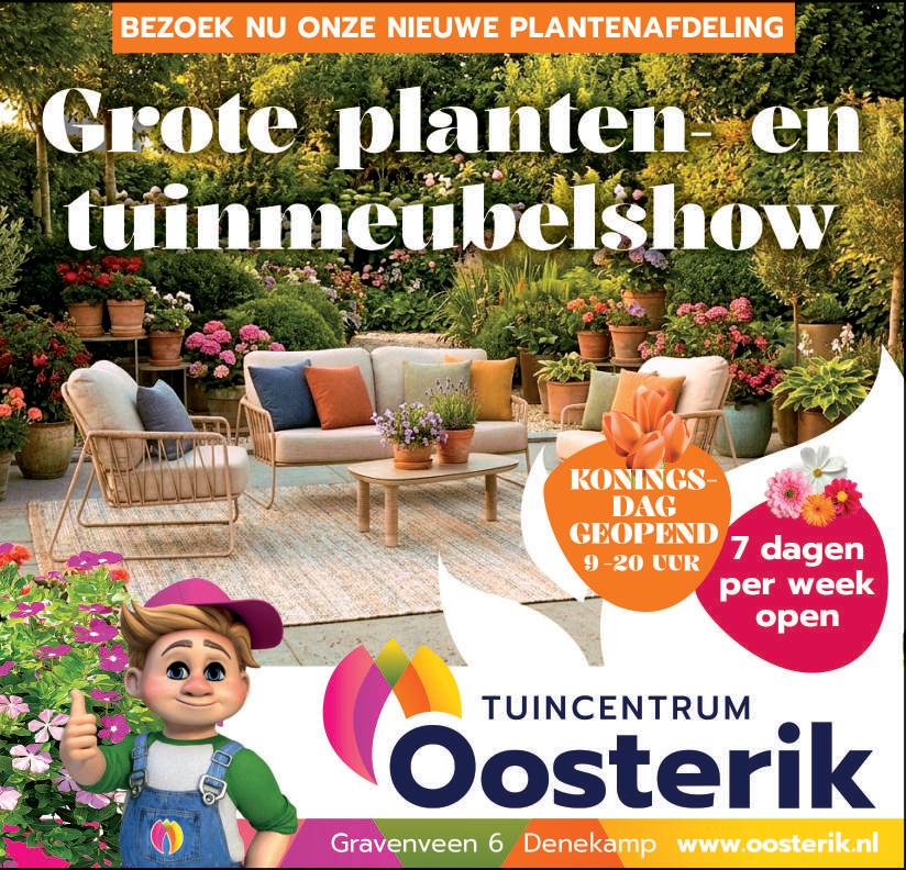 De mobiele showroom staat op woensdag 29 april van 13.00 tot 17.00 uur bij tuincentrum Borghuis aan de Vliegveldstraat 2 in Deurningen. Op woensdag 6 mei is de mobiele showroom van 13.00 tot 17.00 uur te vinden bij tuincentrum Heerdink aan de Haarbrinksweg 26 in Geesteren. De activiteit is vrij toegankelijk en geschikt voor alle leeftijden.