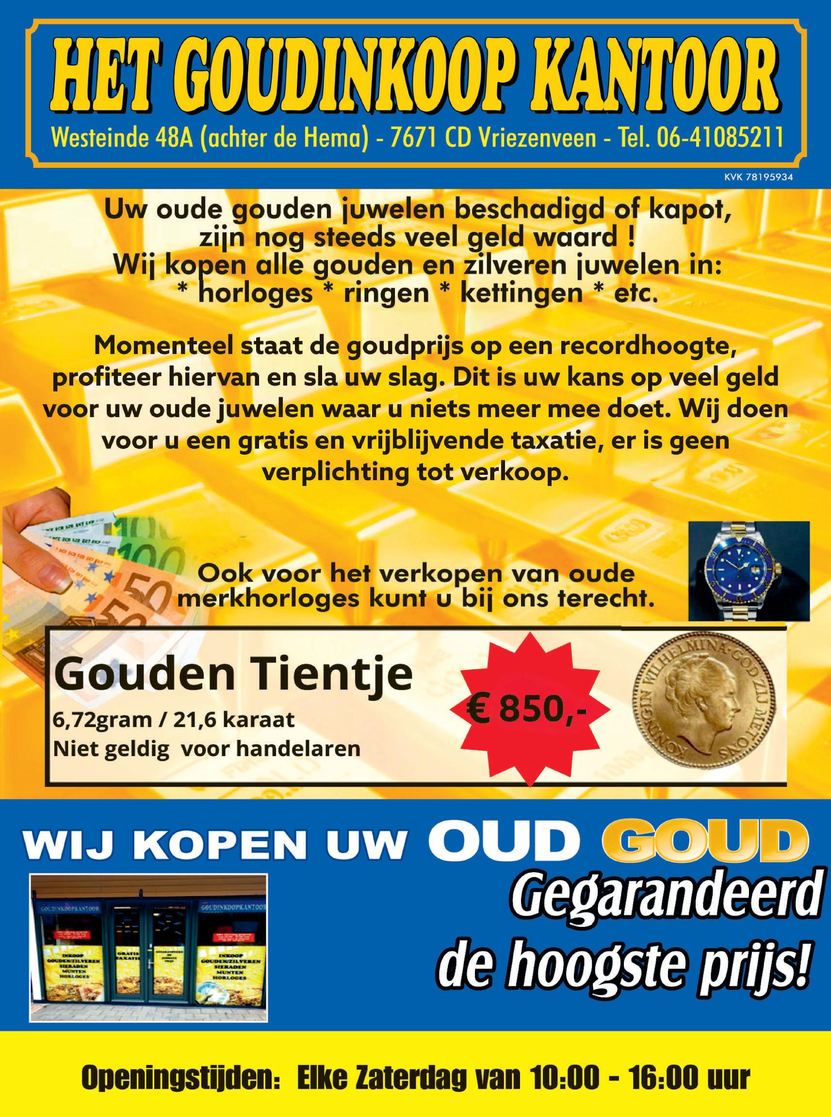 Advertenties aanleveren uiterlijk donderdag 17.00 uur
