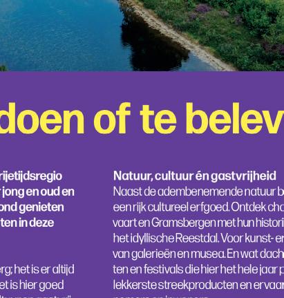 Misschien kom je om te wandelen of te fietsen. Om cultuur te ontdekken.