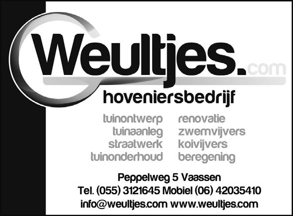 Verspreiding: Oplage 19.500 exemplaren Elke dinsdag / woensdag door Snel & Well in Epe, Vaassen, Emst, Terwolde, Oene, Nijbroek, Welsum, De Vecht, Zuuk, Beemte-Broekland, Wenum Wiesel, Wissel en Tongeren. Advertentieverkoop & media-advies: Oscar Streppel, Telefoon 06 - 83209205 vaassensweekblad@drukkerijvanbarneveld.nl