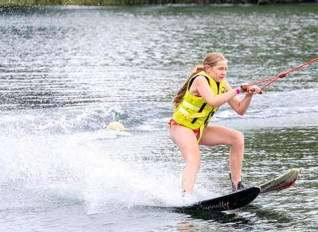 Maar liefst 38 jongeren tussen de 12 en 23 jaar beleefden maandagmiddag een sportief avontuur vol actie, lef en waterpret bij Burnside Cablepark in Emst. Het jongerenwerk van Koppel-Swoe organiseerde een spetterende middag waterskiën en wakeboarden en die werd met veel enthousiasme ontvangen. (Foto Fred Rijckenberg).