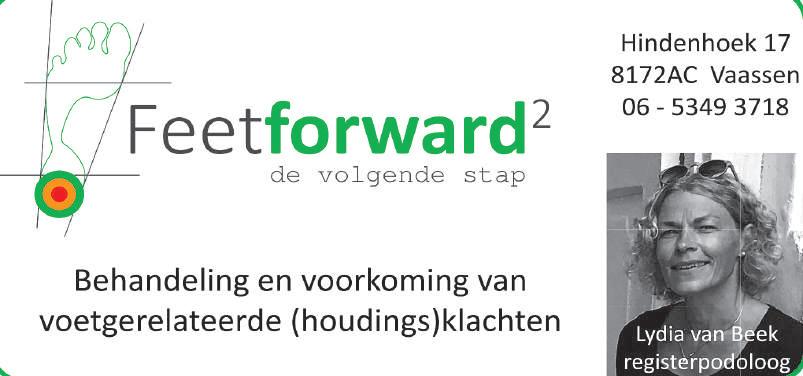 Verspreiding: Oplage 19.500 exemplaren Elke dinsdag / woensdag door Snel & Well in Epe, Vaassen, Emst, Terwolde, Oene, Nijbroek, Welsum, De Vecht, Zuuk, Beemte-Broekland, Wenum Wiesel, Wissel en Tongeren. Advertentieverkoop & media-advies: Oscar Streppel, Telefoon 06 - 83209205 vaassensweekblad@drukkerijvanbarneveld.nl