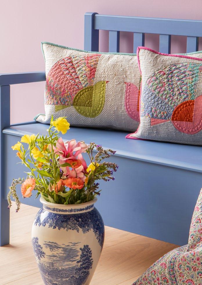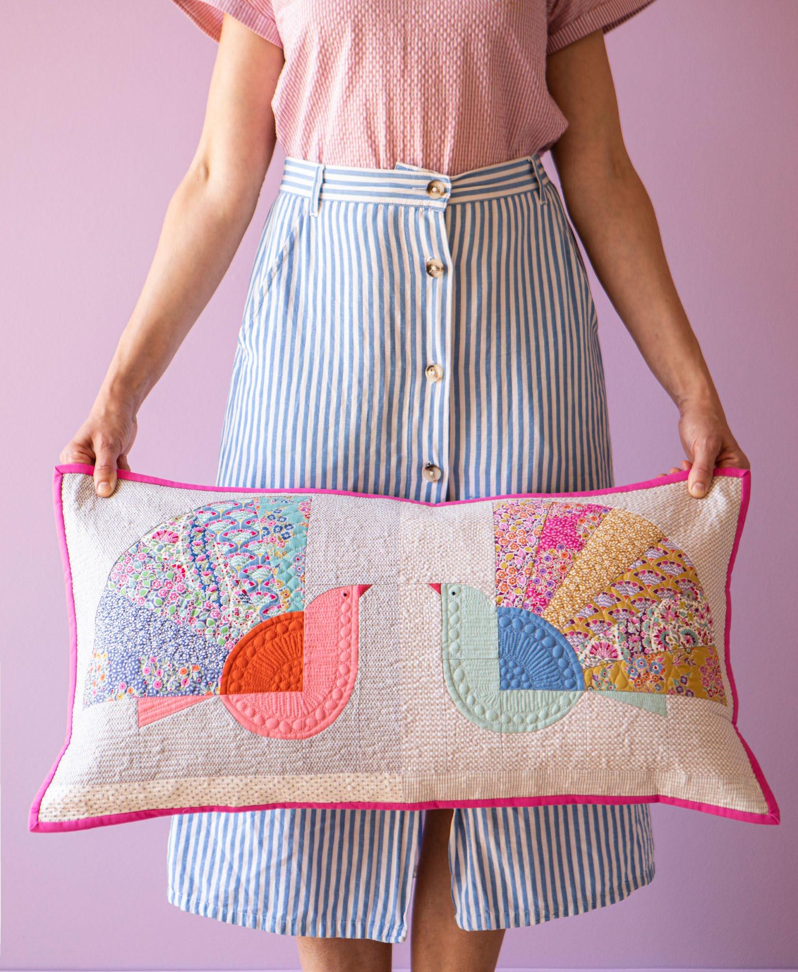 Forever Yours Quilt Mustard together with Forever Yours pillows Pink and Light Blue Right – Fan Bird Quilt and Pillows.