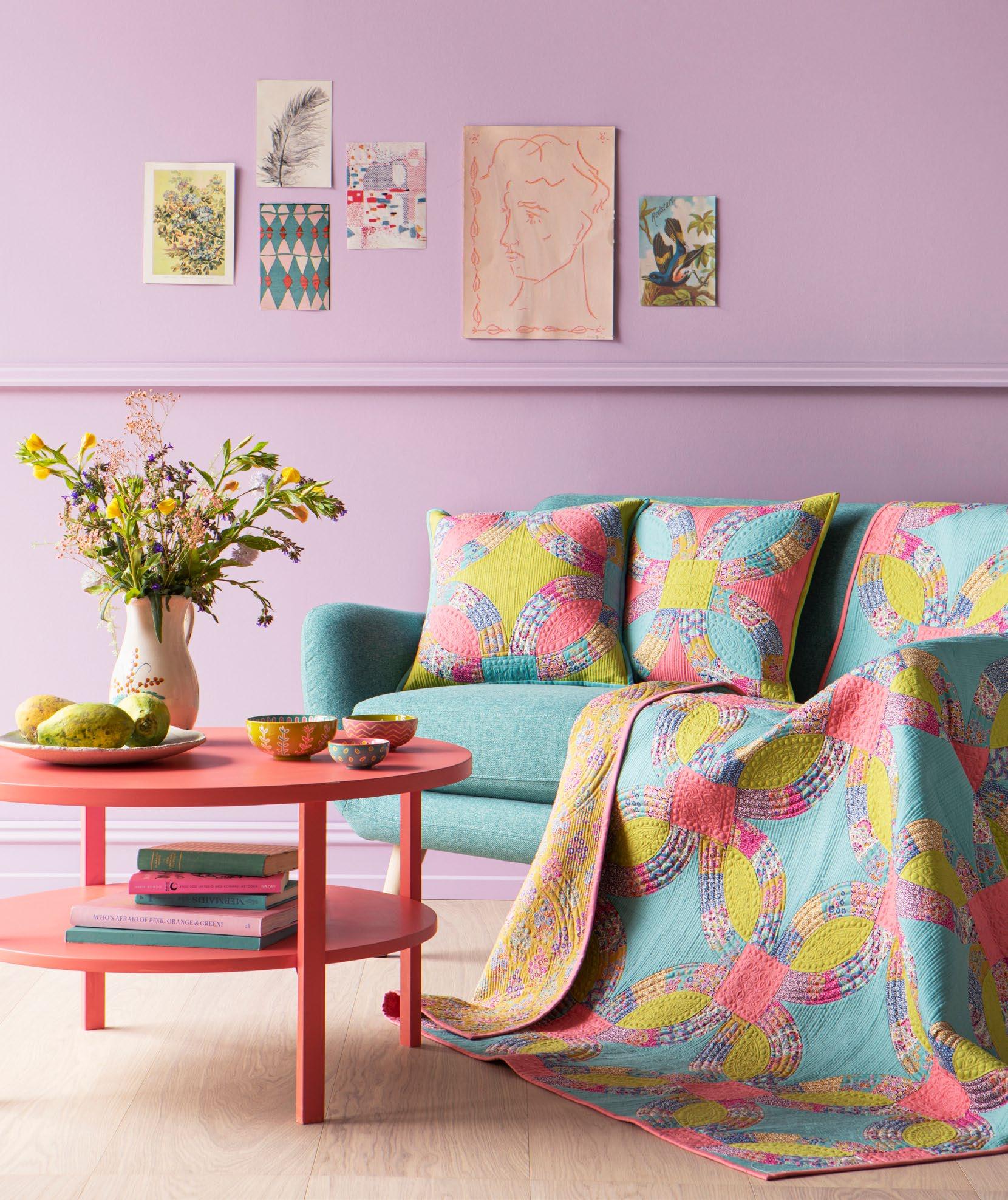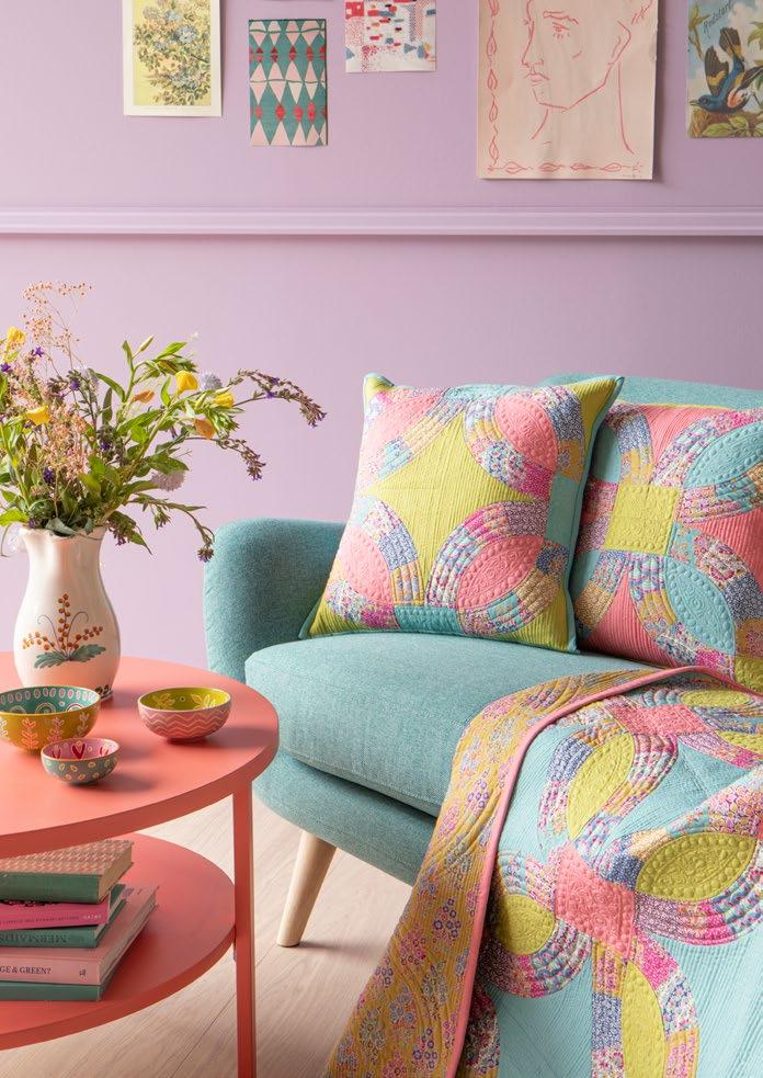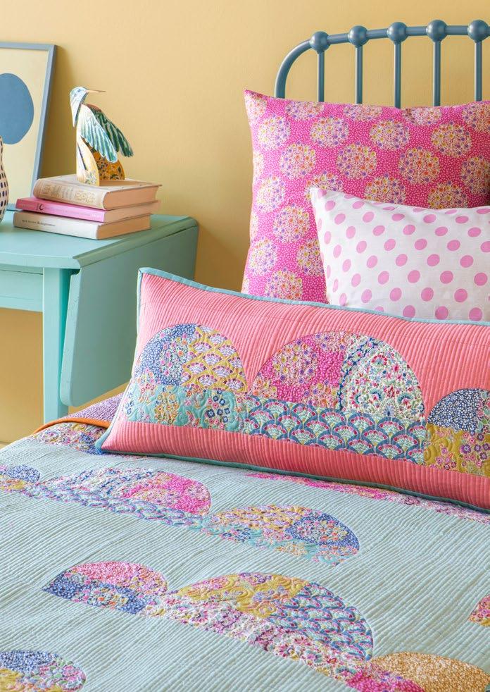 Forever Yours Quilt Dusty Teal together with Forever Yours pillows Lime Green and Coral. Patterns on www.tildasworld.com