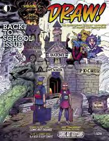 BACK TO SCHOOL ISSUE, covering major schools offering comic art as part of their curriculum, featuring faculty, student, and graduate interviews in an ultimate overview of collegiate-level comic art classes! Plus, a “how-to” demo/interview with BILL REINHOLD, MANLEY and BRET BLEVINS’ COMIC ART BOOTCAMP series, and more!