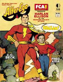 Science-fiction great (and erstwhile comics writer) HARLAN ELLISON talks about Captain Marvel and The Monster Society of Evil! Also, Captain Marvel artist/ co-creator C.C. BECK writes about the infamous Superman-Captain Marvel lawsuit of the 1940s and ’50s in a double-size FCA section! Plus two titanic tributes to Golden Age artist FRED KIDA, MR. MONSTER, BILL SCHELLY, and more!