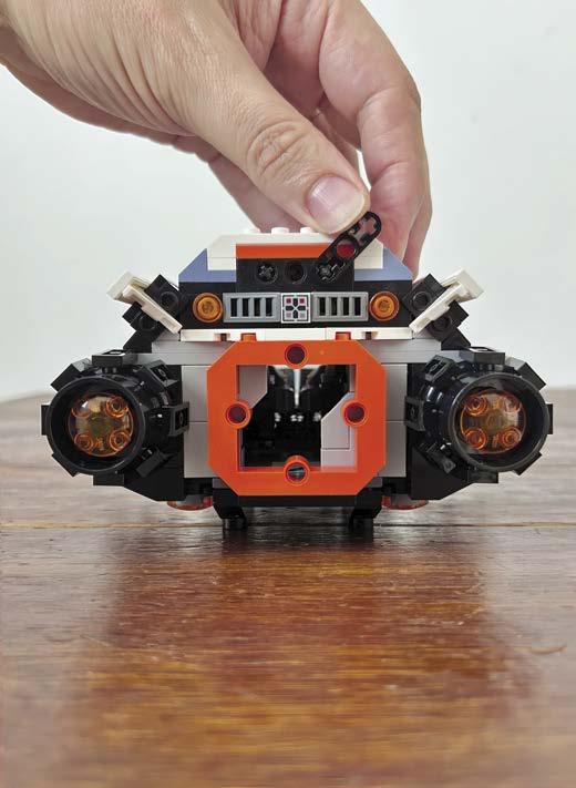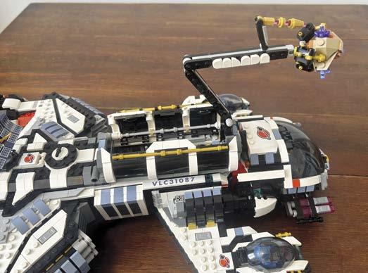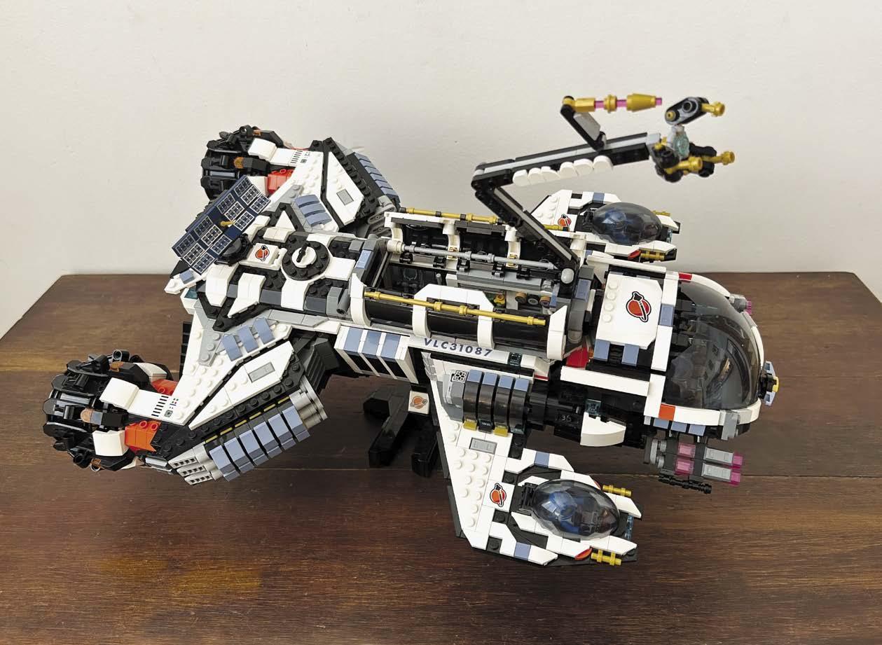 A black-and-white spacecraft measuring 17 inches long and 12 inches wide, The Orion is packed with clever details and surprises. Its triton-shaped front and dual thrusters in the rear give it a solid, powerful look, but it’s the attention to detail and high fun-factor that truly sets it apart. The Orion’s win at BrickCon wasn’t its first—it also took home the Stellar Spaceship award at BrickCan 2025.