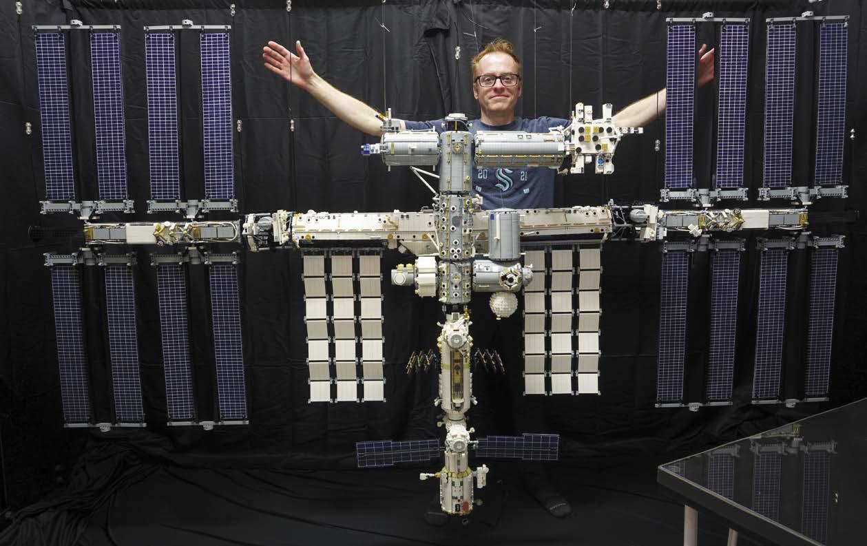 Hughes already had experience in this area and wowed LEGO fans at previous conventions with a four-foot wide, animated rendition of Howard Hughes’ (no relation) Hell’s Angels, where micro-scale biplanes would down an enemy zeppelin. Striving for more, Hughes initially thought a small section of the ISS with a capsule docking would make a good build, but that inner urge for completeness wouldn’t let up.