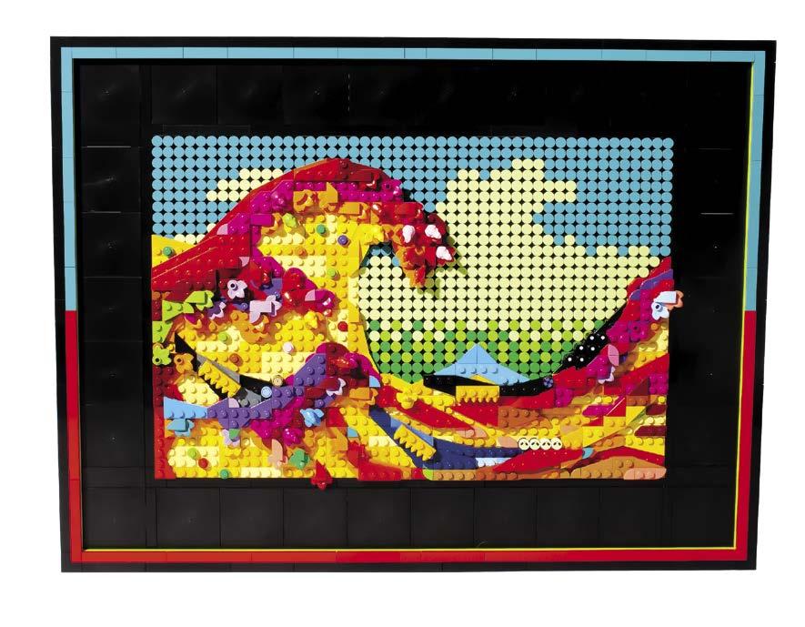 (right) Great Wave off Kanagawa by Japanese artist Hokusai, as interpreted in LEGO by Nate Mielnik.