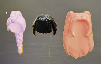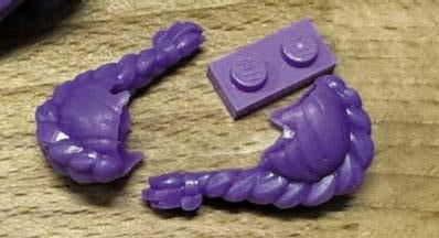 This is a complicated subject, as her hair changes slightly throughout the film, and the color is a bit deeper purple, but Fortnite made it Medium Lavender, and this was my goal as well. Currently there are only four hairstyles in this color according to Bricklink, and I am sure LEGO calls it something else, but I am using the Bricklink Color Guide (https://v2.bricklink. com/en-us/catalog/color-guide). To make this color resin, I started with a dark purple that is out of production, unfortunately. I added white, blue, and ultimately just a touch of yellow. As you are working through, it is important to add very small amounts of other color resins. You can color saturate and it will turn muddy, grey, or brown fast. This was more apparent in the creation of the hairpiece for Mira, and I had to start over.