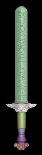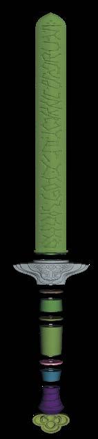 (above) The original gilded Rumi sword reference, and exploded view, and Rumi’s sword.