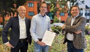 Gietelink (CFO Dutch Flower Group), Harry Brockhoff (Lid RvB Dutch Flower Group) en Wesley van den Berg (manager Florida ta), een overeenkomst voor ver lenging van de samenwerking tussen beide organisaties.