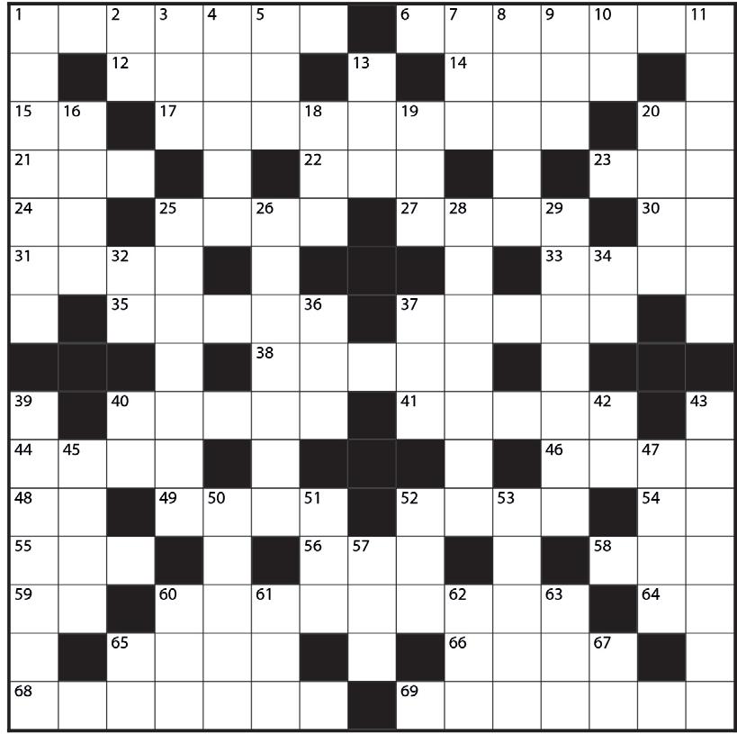 Breng letters uit de puzzel over naar de hokjes met hetzelfde nummer. Horizontaal: 1 sieraad 6 zweefrek 12 ploegsnede 14 bezieling 15 landbouwwerktuig 17 importantie 20 televisie 21 tongstreling 22 Balt 23 halsbont 24 slee 25 eerste man 27 elektronische schakeling 30 daar 31 middag 33 godsdienstig gebruik 35 christelijk feest 37 gemene opmerking 38 van geringe kwaliteit 40 tamelijk 41 flauw 44 hoofdstad van Noorwegen 46 naarling 48 laatstleden 49 maatstaf 52 gebakje 54 editie 55 toverheks 56 gravin van Holland 58 Chinese deegwaren 59 Nieuwe Testament 60 smulpaap 64 nummer 65 zoete lekkernij 66 op alle plaatsen 68 deel v.e. fiets 69 droevig.