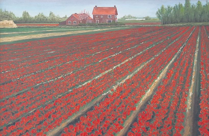 HILLEGOM n De kleurrijke bloembollenvelden van de Bollenstreek vormen al eeuwenlang een iconisch landschap. De Hillegomse kunstenaar Wim Granneman brengt dit unieke erfgoed tot leven in een bijzondere serie handgemaakte olieverfschilderijen die hij van 6 maart tot en met 18 mei 2026 exposeert in de bibliotheek van Hillegom. Zijn realistische werken tonen authentieke beelden van de bloeiende velden van de Bollenstreek.