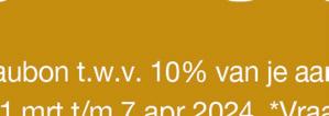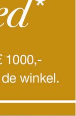 Ontvang een cadeaubon t.w.v. 10% van je aankoop bij besteding van € 1000,- Actielooptijd t/m 7 april 2024. Vraag naar de voorwaarden in de winkel.