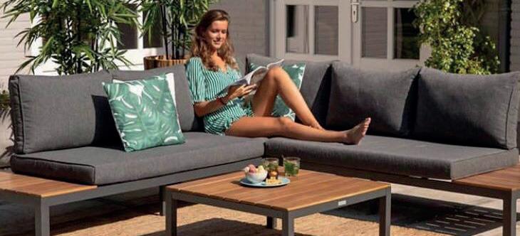 Royale loungebank. Extra comfort door HR zitvulling. Inclusief 9-delige kussenset.