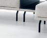 Moderne belijning. Volle zit- en rugkussens in fijne stof, zwart metalen poten. Inclusief massief eiken tussenkast.