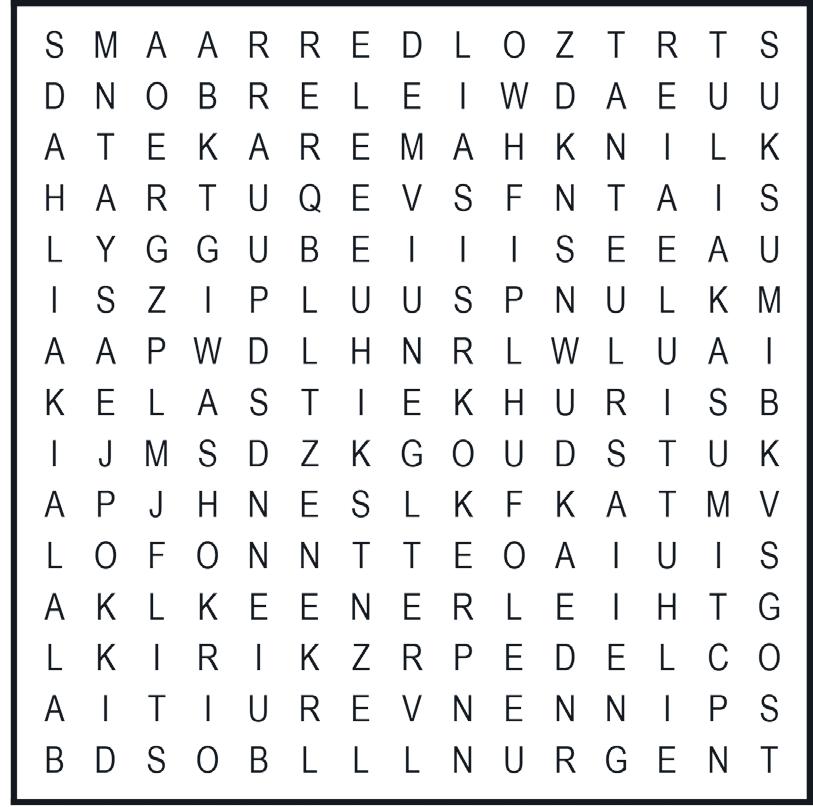 De woorden zitten horizontaal, verticaal en diagonaal in alle richtingen in de puzzel verstopt. Ze kunnen elkaar overlappen. Zoek ze op en streep ze af. De overblijvende letters vormen achter elkaar gelezen de oplossing.