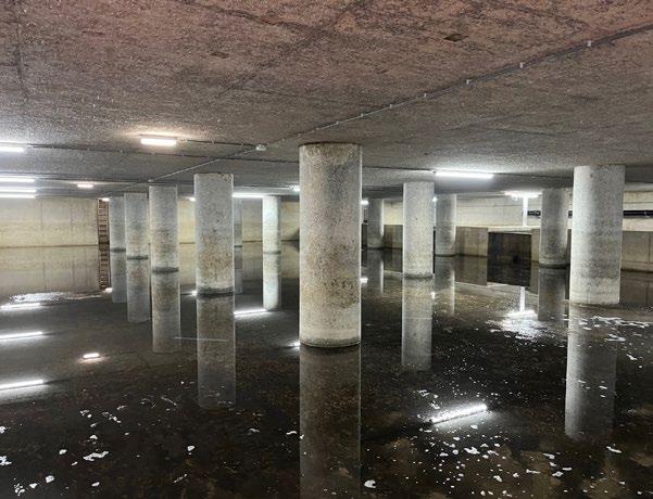 De pompkelder is een grote betonnen bak waarin water vanaf en rondom de weg wordt opgevangen.