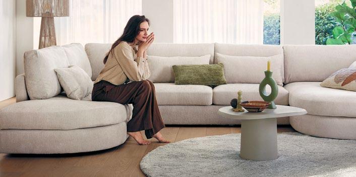 Hoekbank ‘Parosa’ Uitstekend zitcomfort met stijlvolle touch. In bouclé stof. Mogelijk in diverse opstellingen en sto en. 85 x 374 x 240 cm