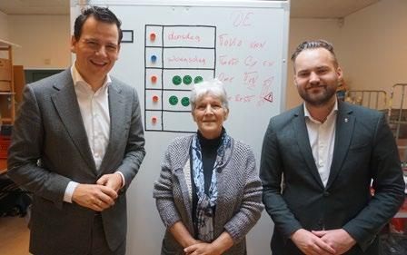 Nadat de groep klaar is met de polonaise, vindt iedereen een plekje om te zitten. ‘Praten voor een grote groep vind ik soms nog wel spannend, maar na het dansen ben ik wat losser geworden’, legt wethou-